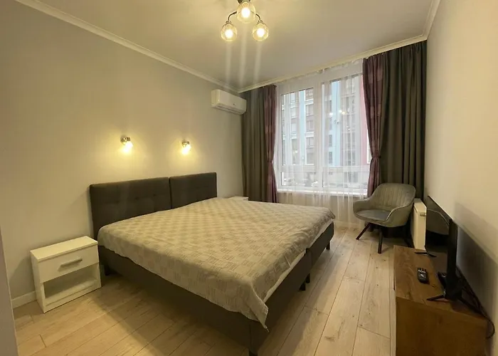 O Семицвіт Central House З Кондиціонером Lviv de 42 m² está localizado a uma distância aproximada de 2 km de Praça do Mercado e a aproximadamente 20 minutos a pé de Palácio das Artes de Lviv. Este apartamento de 1 quartos dispõe de Wi-Fi, juntamente com o parque de estacionamento para os hóspedes que viajam de carro.